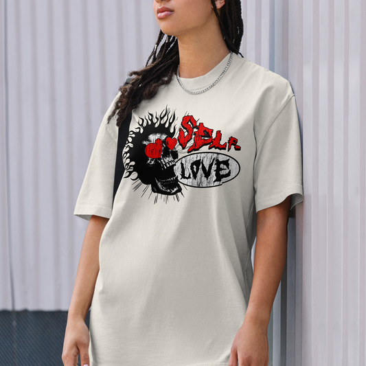 Self Love Flaming Skull Oversized Faded T-Shirt